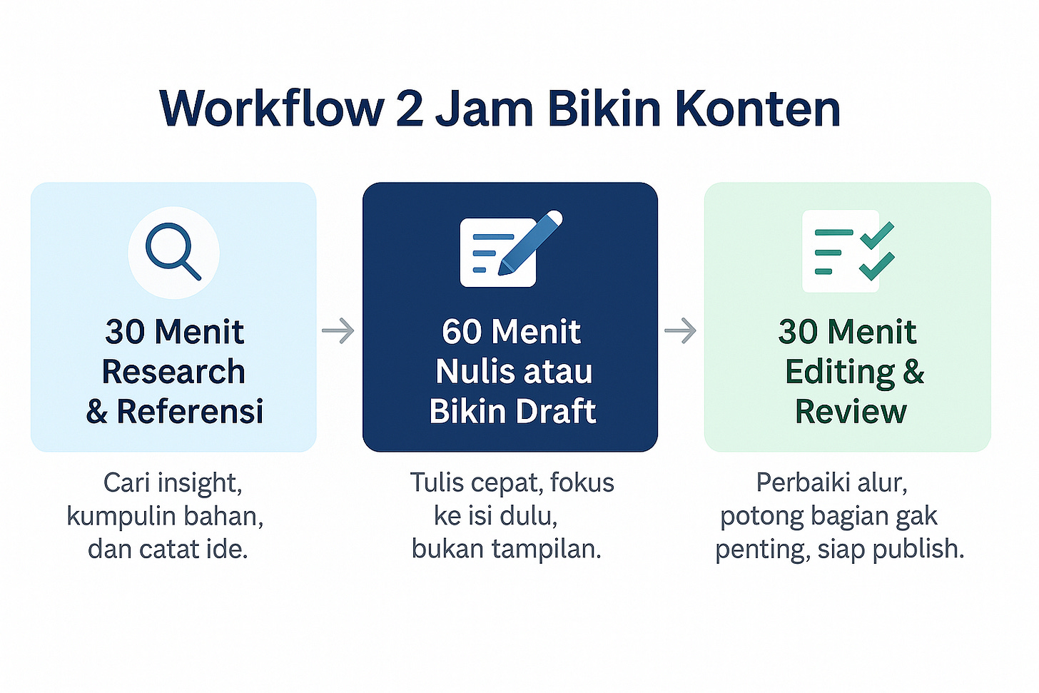 Banyak orang mikir bikin konten itu butuh full-time job. Faktanya? Konsistensi bukan soal berapa lama lo kerja, tapi gimana sistem yang lo punya.