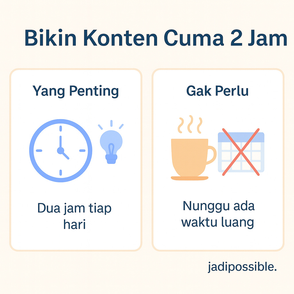 Truth is: bikin konten cuma 2 jam per hari itu bukan mitos. Itu soal sistem yang tepat.
